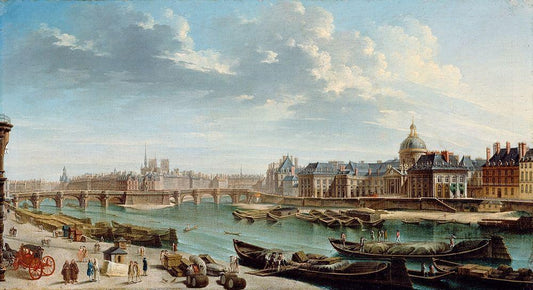 A View of Paris with the Ile de la Cité White Modern Wood Framed Art Print with Double Matting by Raguenet, Jean-Baptiste