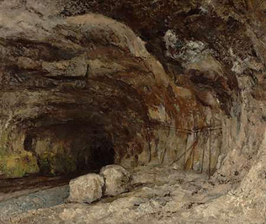 Grotto of Sarrazine near Nans-sous-Sainte-Anne White Modern Wood Framed Art Print with Double Matting by Courbet, Gustave