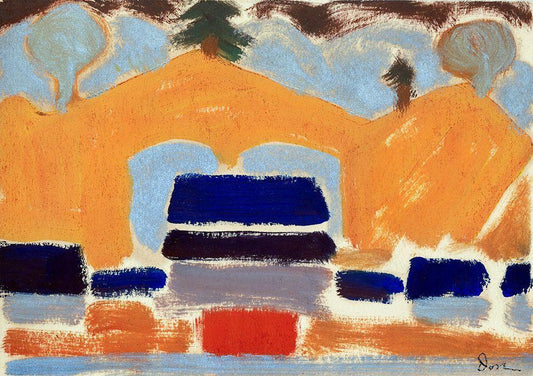 Landscape with Houses White Modern Wood Framed Art Print with Double Matting by Dove, Arthur