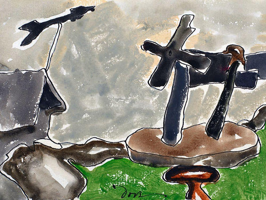Landscape with Weather Vane White Modern Wood Framed Art Print with Double Matting by Dove, Arthur