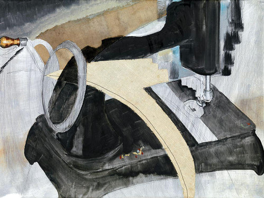 Hand Sewing Machine White Modern Wood Framed Art Print with Double Matting by Dove, Arthur