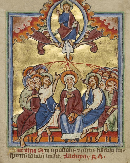 Pentecost White Modern Wood Framed Art Print with Double Matting by Illuminator, Unknown 12th Century English