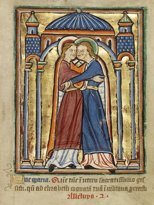 The Visitation White Modern Wood Framed Art Print with Double Matting by Illuminator, Unknown 12th Century English