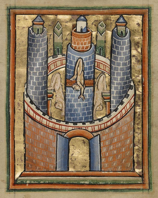 An Angel Casting a Millstone into the Sea White Modern Wood Framed Art Print with Double Matting by Illuminator, Unknown 13th Century