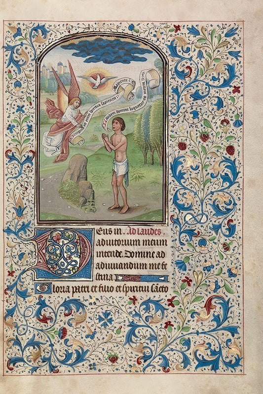 An Angel Standing in the Sun and Birds Invited to the Repast White Modern Wood Framed Art Print with Double Matting by Illuminator, Unknown 13th Century