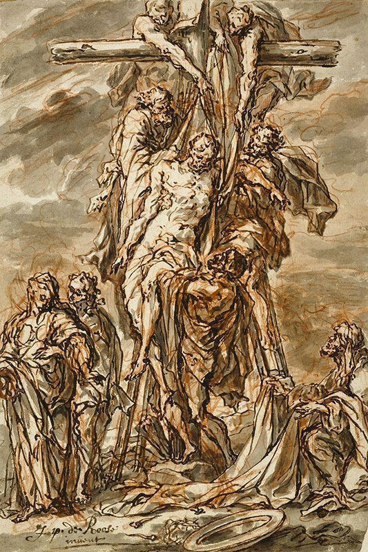 Descent from the Cross White Modern Wood Framed Art Print with Double Matting by Roos, Phillip