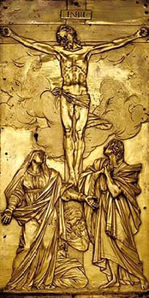 Tabernacle Door with the Crucifixion White Modern Wood Framed Art Print with Double Matting by Mochi, Francesco