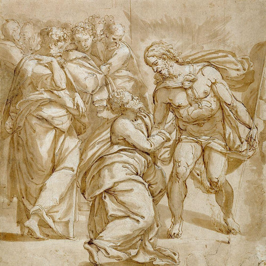 The Incredulity of Thomas White Modern Wood Framed Art Print with Double Matting by Tibaldi, Pellegrino