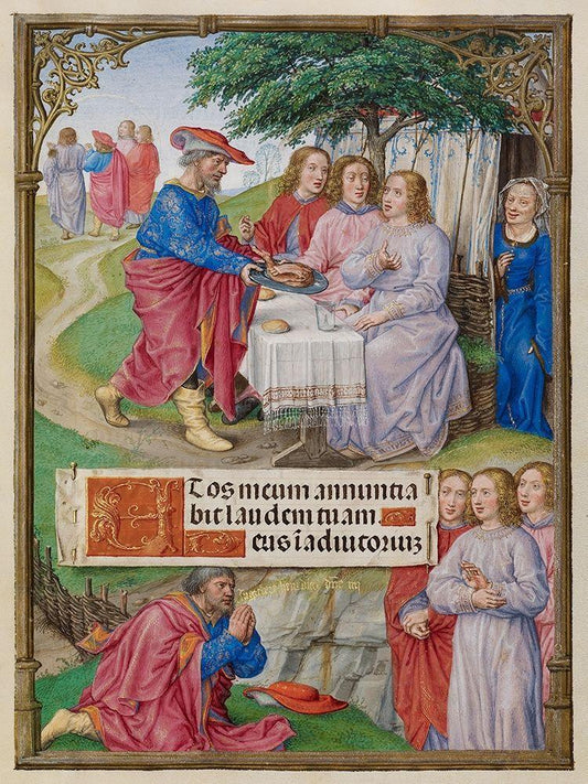Abraham and the Three Angels White Modern Wood Framed Art Print with Double Matting by Illuminator, Unknown 16th Century Flemish