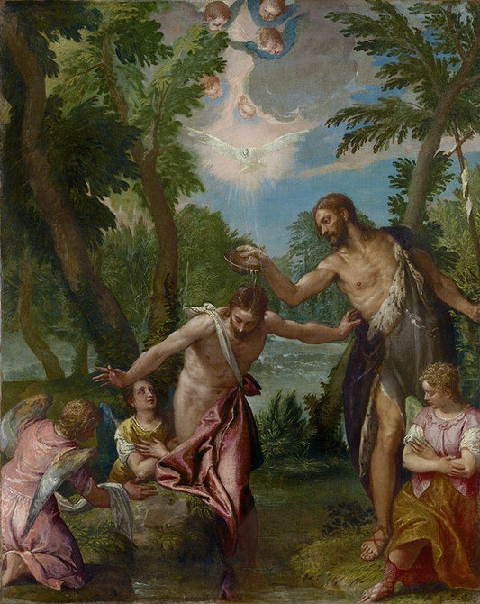 The Baptism of Christ White Modern Wood Framed Art Print with Double Matting by Veronese, Paolo
