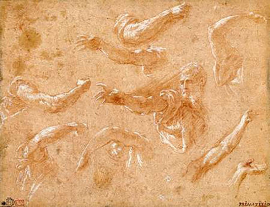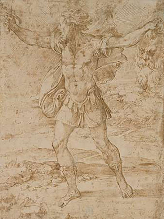 An Angel Holding a Book (recto); Three Studies of a Falling Male Figure (verso) White Modern Wood Framed Art Print with Double Matting by Roncalli, Cristoforo