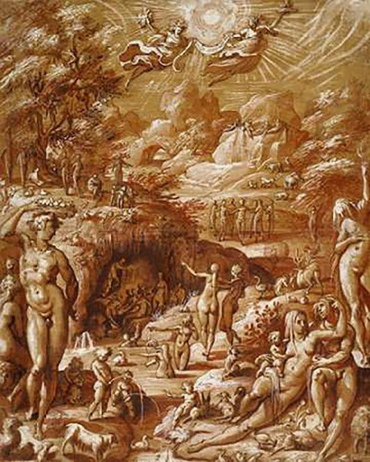 The Age of Gold White Modern Wood Framed Art Print with Double Matting by Zucchi, Jacopo