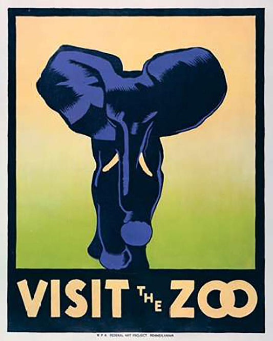 Visit the zoo - Elephant White Modern Wood Framed Art Print with Double Matting by Stephenson, Hugh