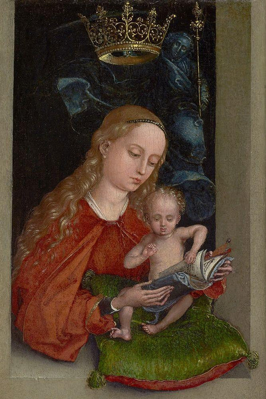 Madonna and Child in a Window White Modern Wood Framed Art Print with Double Matting by Schongauer, Martin