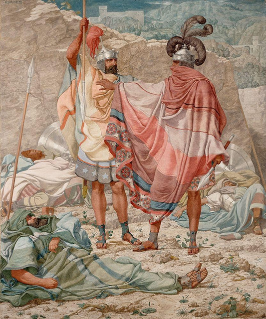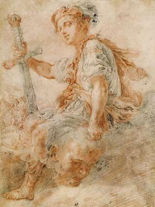 David with His Sword White Modern Wood Framed Art Print with Double Matting by de Bray, Salomon