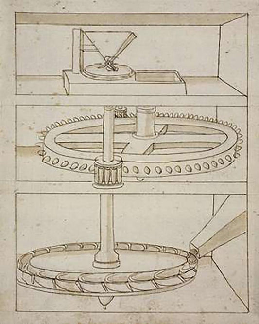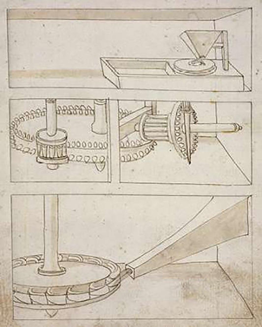 Folio 39: mill with horizontal water wheel White Modern Wood Framed Art Print with Double Matting by Martini, Francesco di