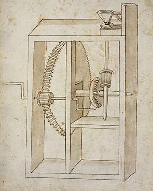 Mill powered by crank White Modern Wood Framed Art Print with Double Matting by Martini, Francesco di