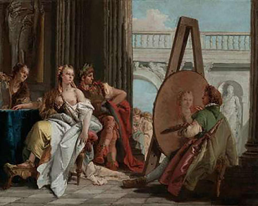 Alexander the Great and Campaspe in the Studio of Apelles White Modern Wood Framed Art Print with Double Matting by Tiepolo, Giovanni Battista