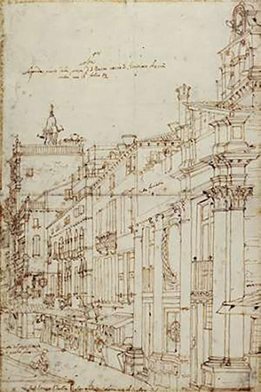 The Campo S. Basso: The North Side with the Church, 1740s White Modern Wood Framed Art Print with Double Matting by Canaletto