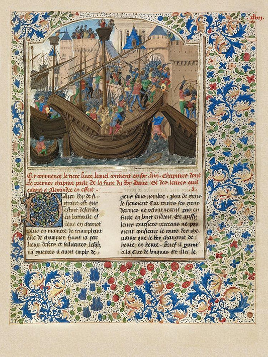 Alexander Attacks the City of Tyre White Modern Wood Framed Art Print with Double Matting by Master of the Jardin de vertueuse consolation,