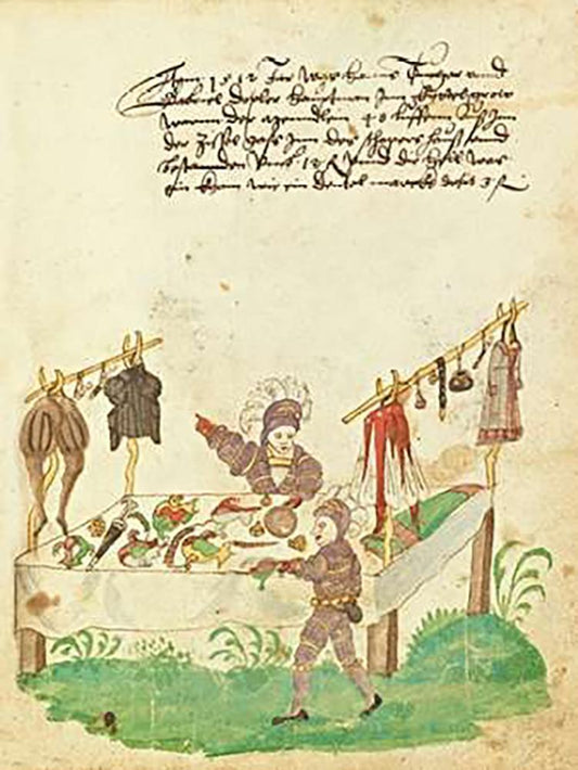 Civic festival of the Nuremberg Schembartlauf - Clothing Table White Modern Wood Framed Art Print with Double Matting by German 16th Century