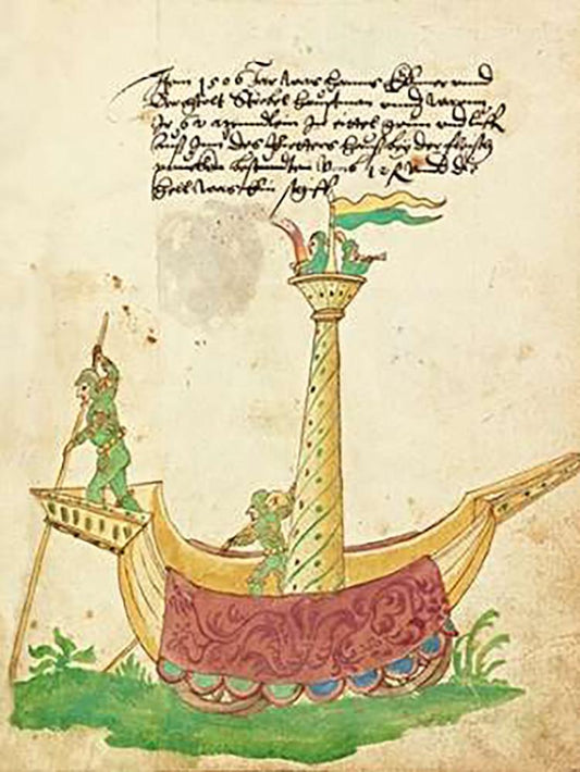Civic festival of the Nuremberg Schembartlauf - Ship Float White Modern Wood Framed Art Print with Double Matting by German 16th Century