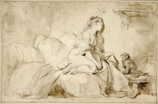 Oh! If Only He Were as Faithful to Me White Modern Wood Framed Art Print with Double Matting by Fragonard, Jean-Honoré