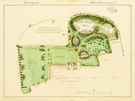 Ancient Garden and Modern Pleasure Garden: Plan, 1813 White Modern Wood Framed Art Print with Double Matting by Repton, Humphry