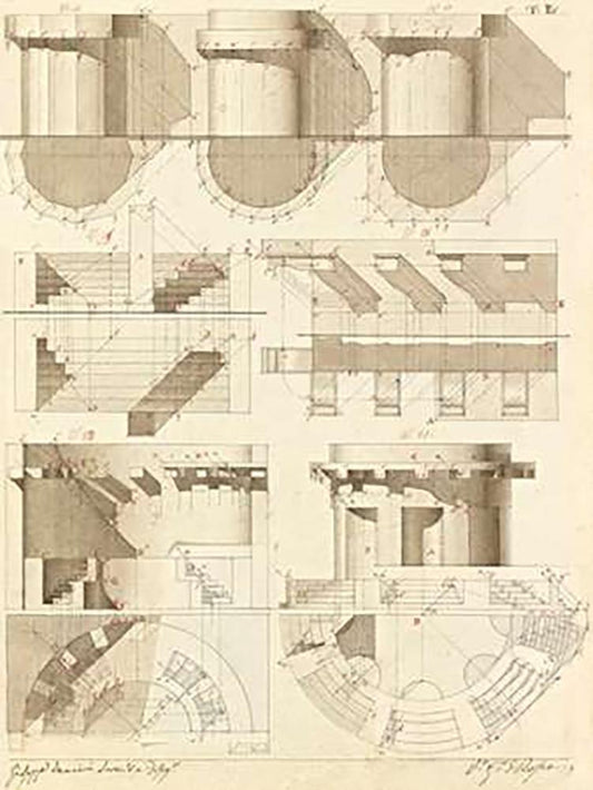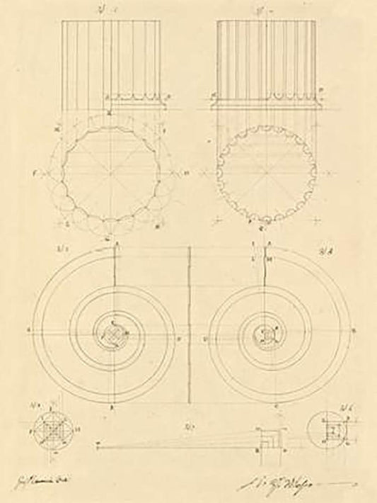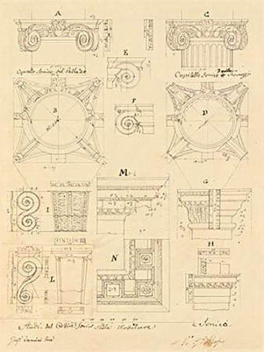 Plate 38 for Elements of Civil Architecture, ca. 1818-1850 White Modern Wood Framed Art Print with Double Matting by Vannini, Giuseppe