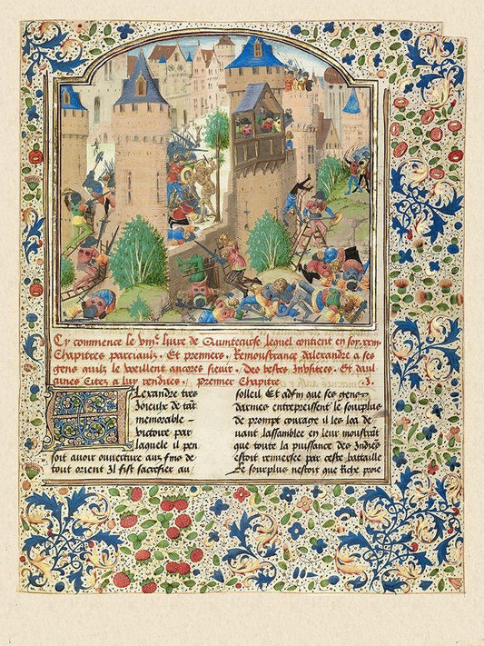 Alexander Fights in the Town of the Sudracae White Modern Wood Framed Art Print with Double Matting by Master of the Jardin de vertueuse consolation