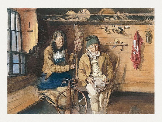 Frau von Allmen and an Unidentified Man in an Interior White Modern Wood Framed Art Print with Double Matting by Sargent, John Singer