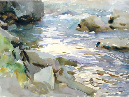 Stream and Rocks White Modern Wood Framed Art Print with Double Matting by Sargent, John Singer