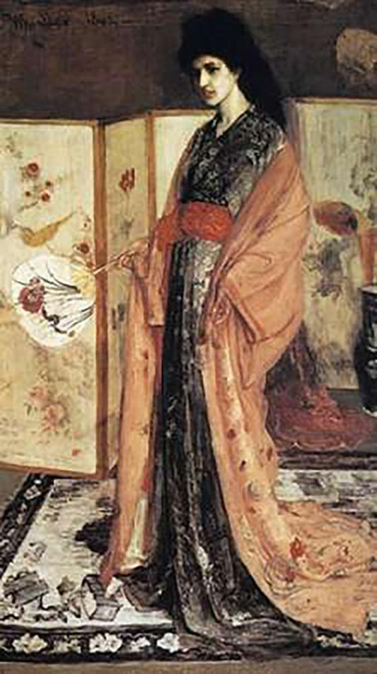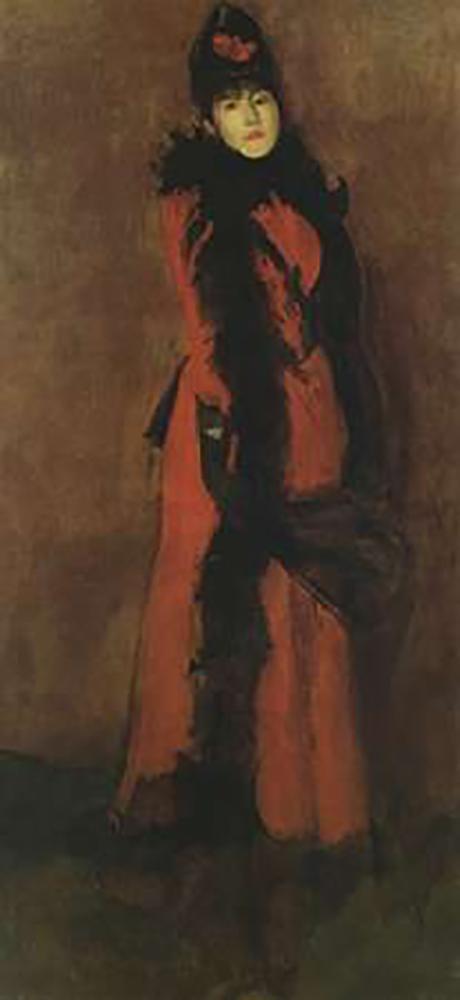 Red And Black The Fan 1891 White Modern Wood Framed Art Print with Double Matting by Whistler, James McNeill