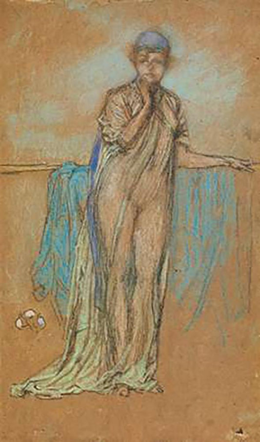 The Purple Cap A Note In Green And Violet 1870s White Modern Wood Framed Art Print with Double Matting by Whistler, James McNeill