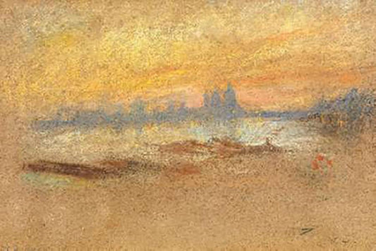 Sunset Red And Gold Salute 1880 White Modern Wood Framed Art Print with Double Matting by Whistler, James McNeill
