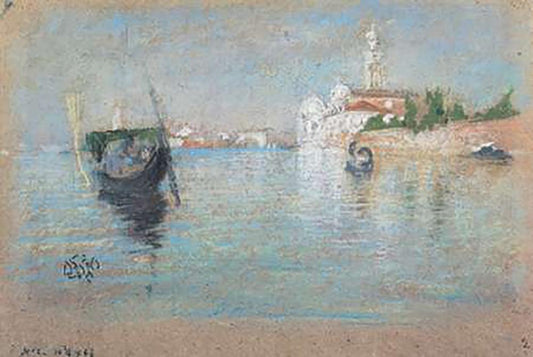 The Guidecca Note In Flesh Color White Modern Wood Framed Art Print with Double Matting by Whistler, James McNeill