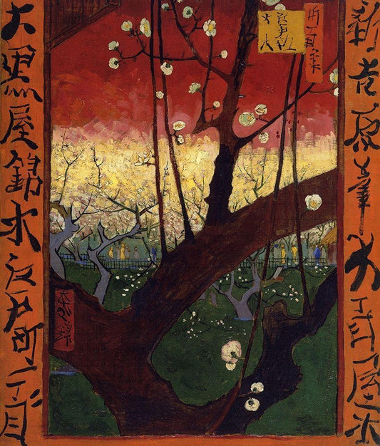 The Flowering Plum Tree (After Hiroshige)1887 White Modern Wood Framed Art Print with Double Matting by Van Gogh, Vincent