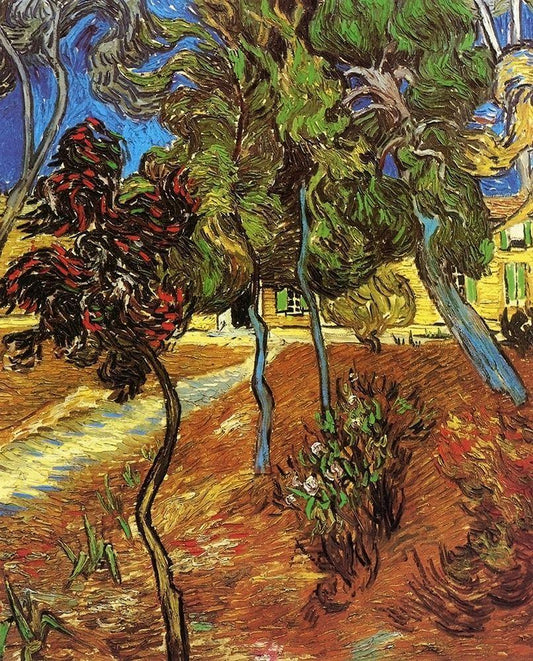Tree In Garden St Paul Hospital White Modern Wood Framed Art Print with Double Matting by Van Gogh, Vincent