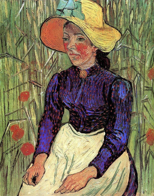Young Peasant Woman Straw Hat White Modern Wood Framed Art Print with Double Matting by Van Gogh, Vincent