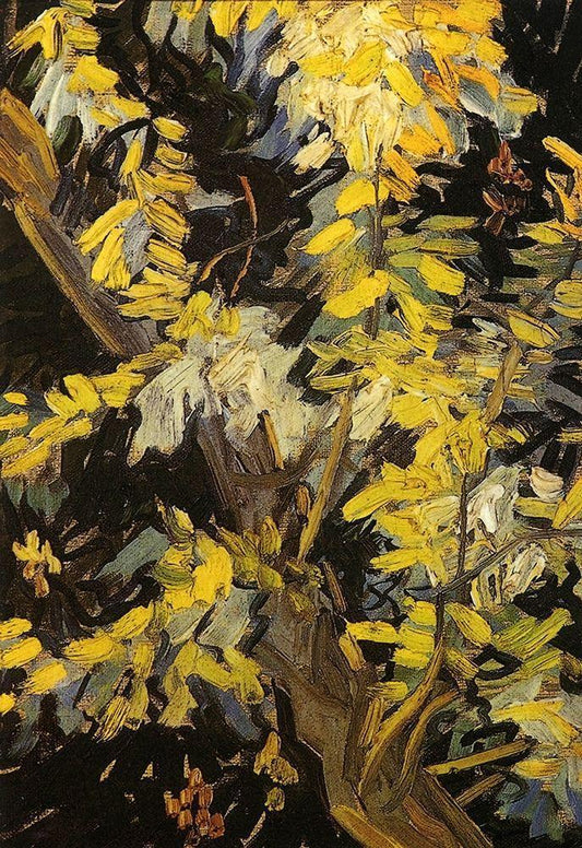 Blossoming Acacia Branches White Modern Wood Framed Art Print with Double Matting by Van Gogh, Vincent