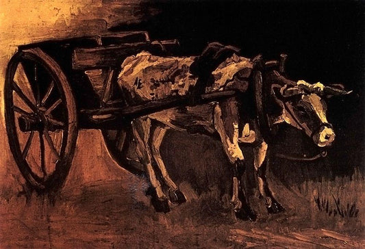 Cart Red White Ox White Modern Wood Framed Art Print with Double Matting by Van Gogh, Vincent