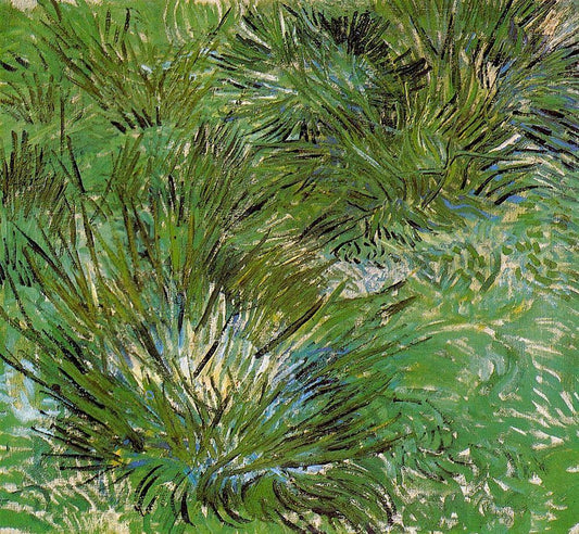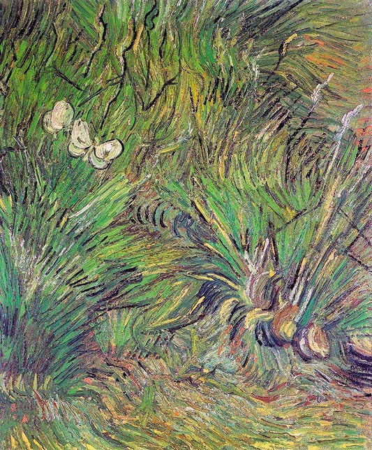 Clumps Of Grass 1889 White Modern Wood Framed Art Print with Double Matting by Van Gogh, Vincent