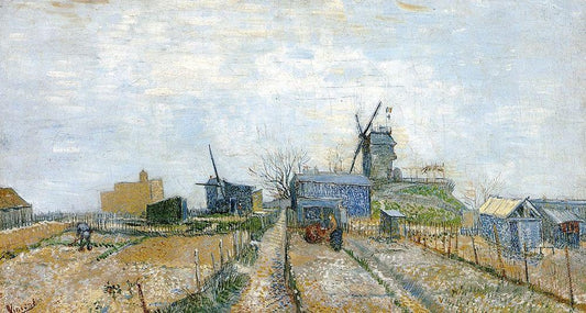 Vegetable Gardens Moulin De Blute White Modern Wood Framed Art Print with Double Matting by Van Gogh, Vincent