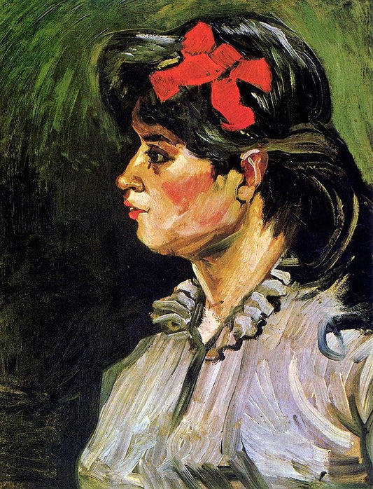 Young Woman With Ribbon White Modern Wood Framed Art Print with Double Matting by Van Gogh, Vincent