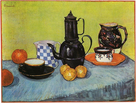Blue Enamel Coffeepot White Modern Wood Framed Art Print with Double Matting by Van Gogh, Vincent