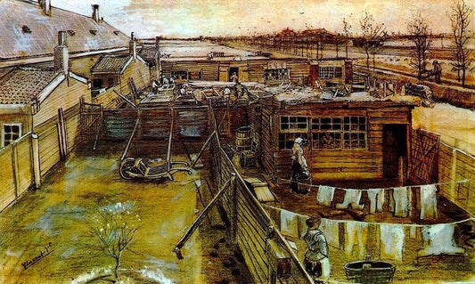 Carpenter Workshop Seen From The Artists Studio White Modern Wood Framed Art Print with Double Matting by Van Gogh, Vincent
