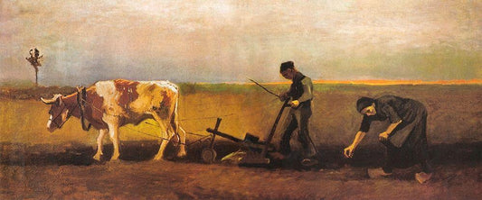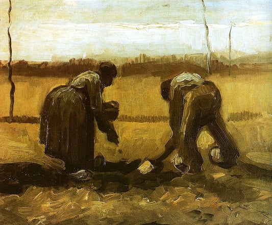 Peasants Planting Potatoes White Modern Wood Framed Art Print with Double Matting by Van Gogh, Vincent
