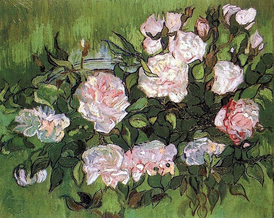 Pink Roses White Modern Wood Framed Art Print with Double Matting by Van Gogh, Vincent