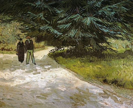 Public Garden With Couple And Blue Fir White Modern Wood Framed Art Print with Double Matting by Van Gogh, Vincent