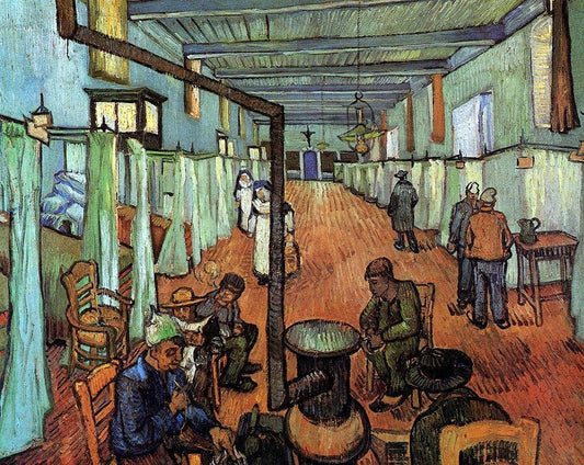 Ward Hospital Arles White Modern Wood Framed Art Print with Double Matting by Van Gogh, Vincent